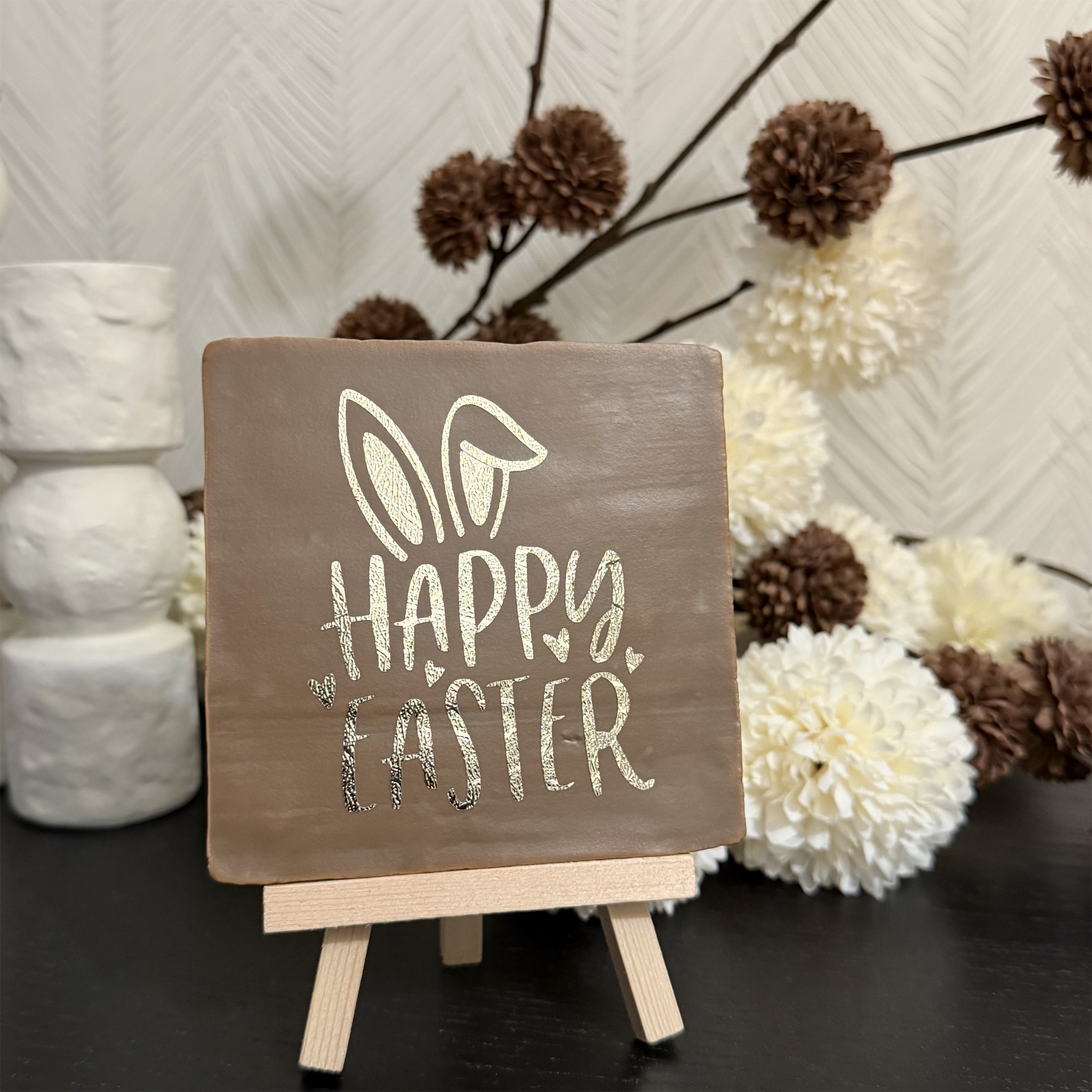 Happy Easter, mat bruin, goud